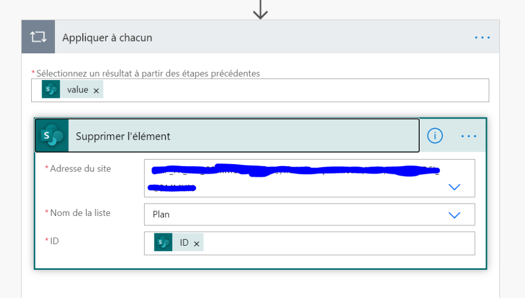 A la fin, on supprime tous les éléments retournés de la liste SharePoint :